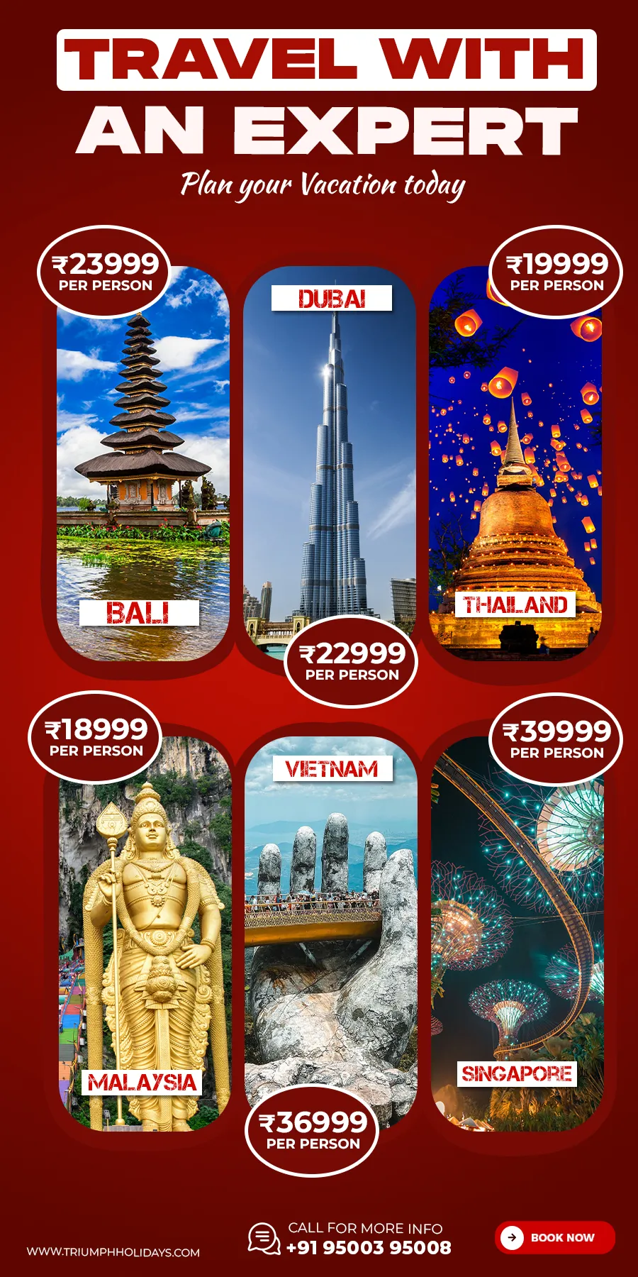 “We had an opportunity from our office to travel to Malaysia for a conference, and Triumph Holidays organized the entire trip very well. A special thanks to Ms. Kavitha, who guided us from ticket booking to clearing all our passport and small doubts, as we were first-time travelers.”